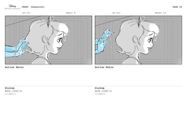 This storyboard sequence for the song, "True Sisters," from Disney's Sofia the First: Once Upon a Princess, was done under the deft direction of Jamie Mitchell. In it, Cinderella appears to a distraught Sofia, and leads her gently to the threshold of reconciliation with her stepsister, Amber. The spirit of the song moved me deeply, and I was delighted to be assigned to storyboard it.